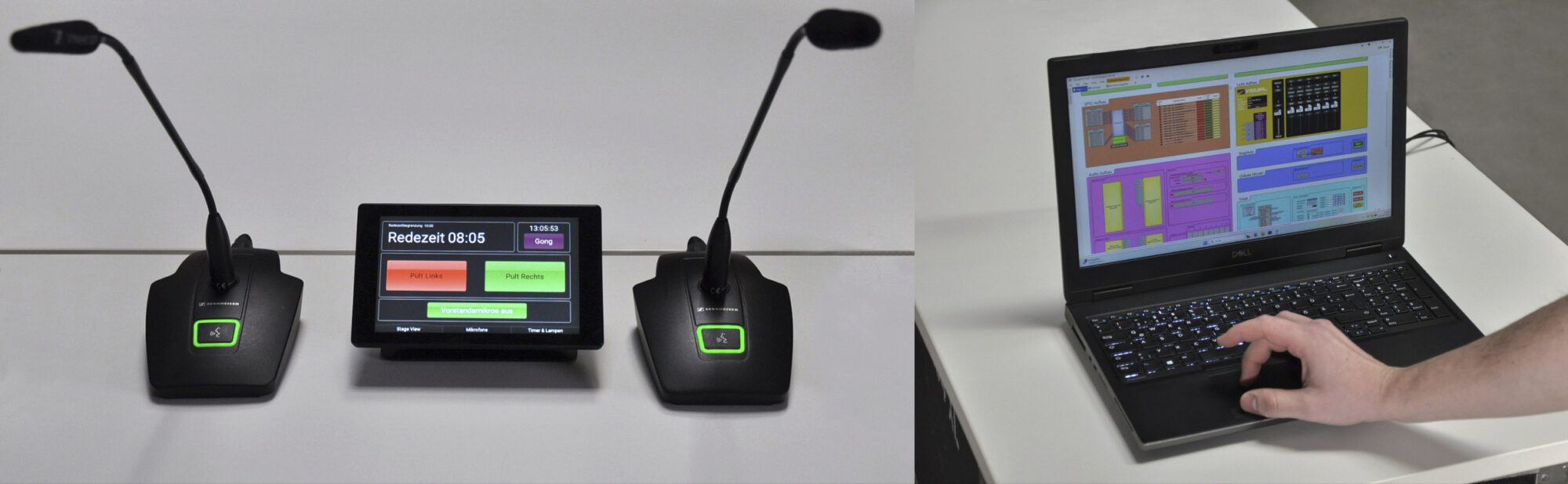 Durch die von uns bereitgestellten Lösungen, können wir sowohl die Mikrofonschaltungen, als auch die Mischpulte und Endstufen redundant anbieten.